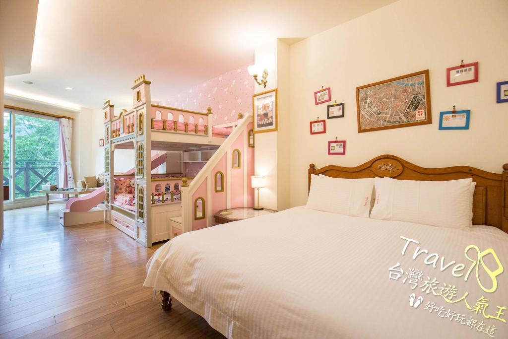 親子房設計有上下鋪與溜滑梯,深受小朋友喜愛,讓孩子們在安全又有趣的環境中盡情玩耍。